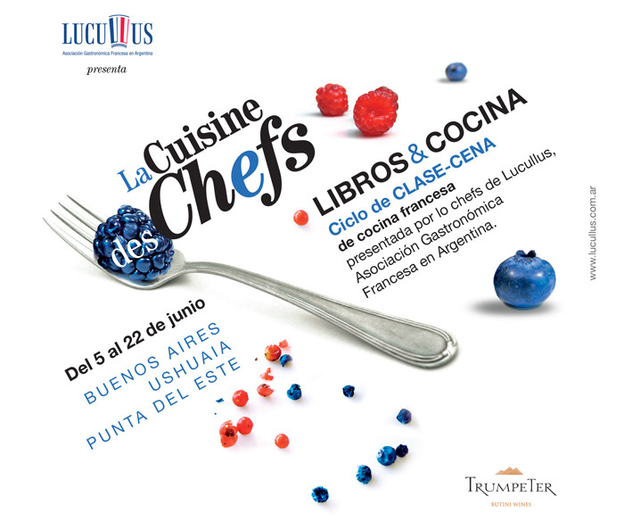 Jueves 12 de junio en Hotel Club Francés (Rodríguez Peña 1832) Comiendo con Proust – Sébastien Fouillade & Antoine Dumazer Este menú diseñado por el Chef Sébastien Fouillade estará acompañado por una degustación de vino a cargo del sommelier Antoine Dumazer. Menú : Potage Bonne Femme – con Trumpeter Réserve Pinot Noir Gigot de cordero con salsa béarnaise – con Trumpeter Réserve Petit Verdot Pot de crème chocolat y Madeleines – con Trumpeter Espumante Método Tradicional Rosé de Malbec o