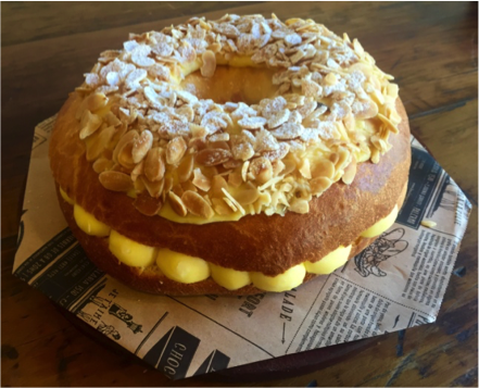 Este año L’Epi Boulangerie propone nuestra rosca tradicional, de Masa Brioche (con un suave aroma a naranjas), cubierta con Crema de Almendras.