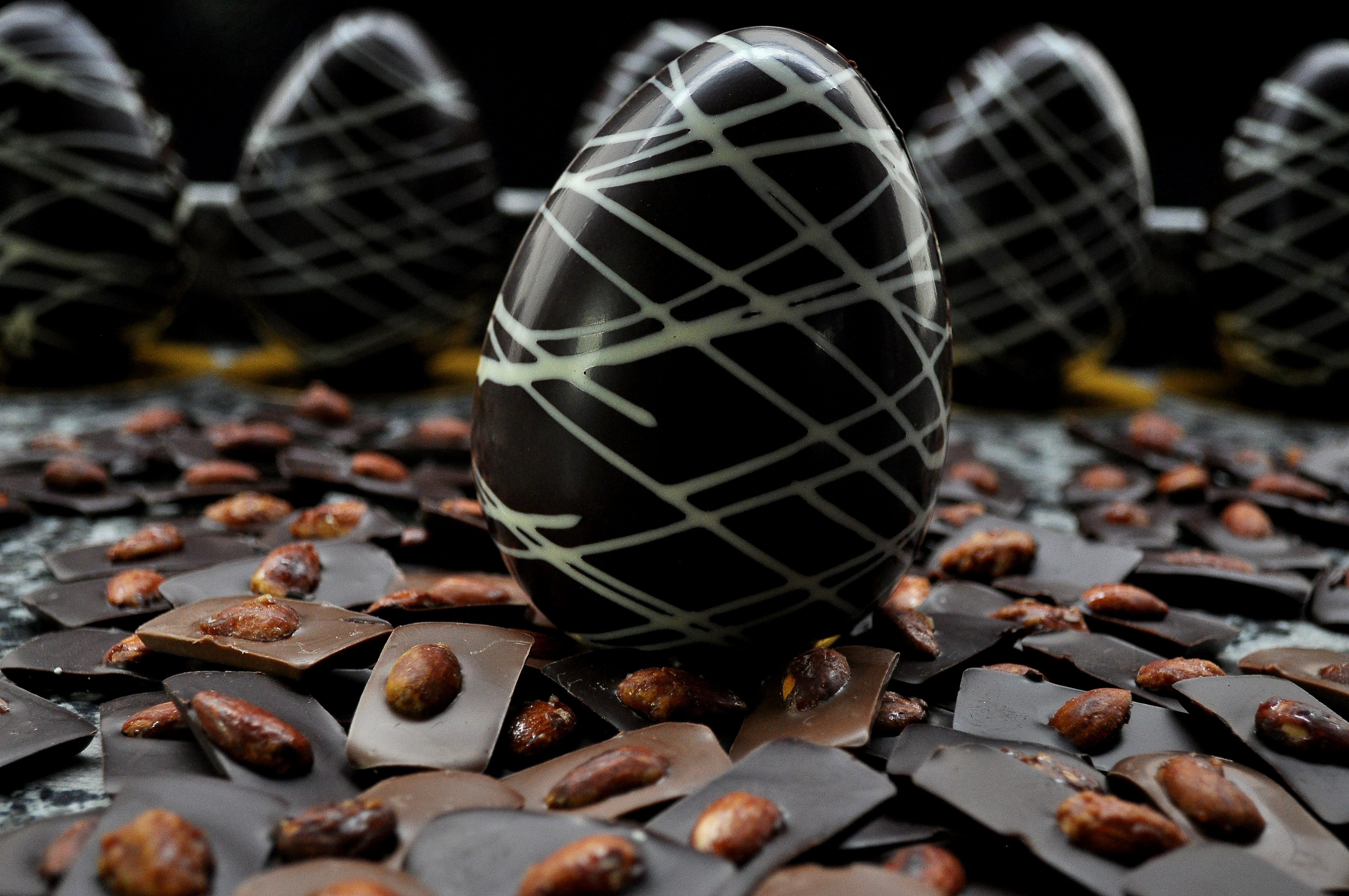 Huevo del Dragon (amargo, leche, blanco) – 350grs – $480 – 6 chocolate almendrados ( surtido blanco, amargo, leche) o 6 pralinette (surtido amargo, leche)