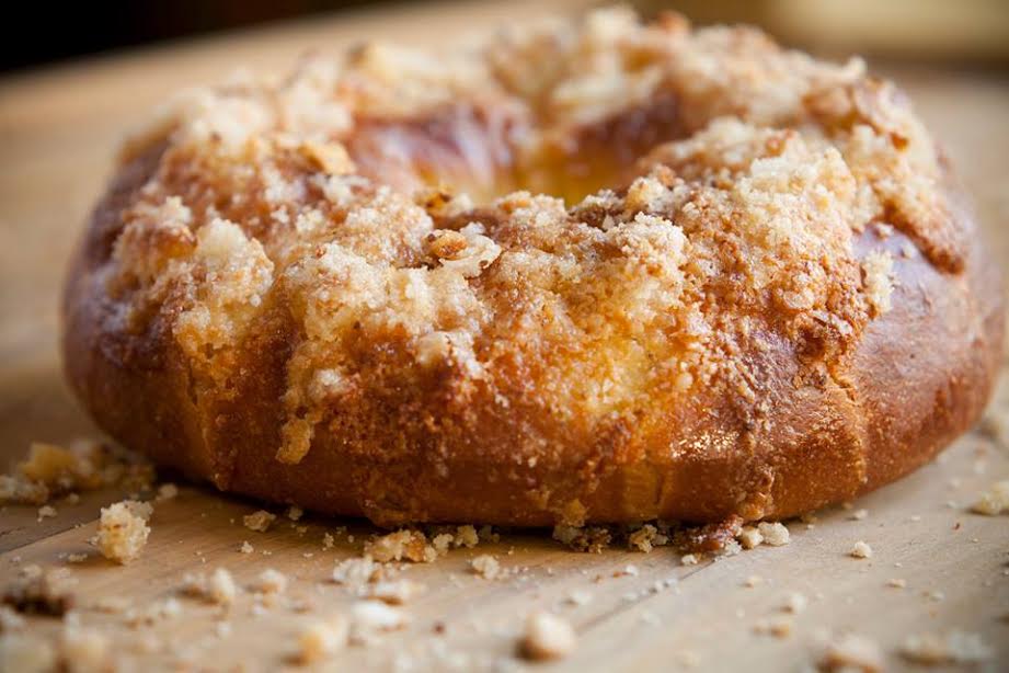 Este año, la panaderia Cocu prepara su rica rosca de Pascua, rellena con crema pastelera de vainilla y cubierta por almendras fileteadas y azucar impalpable.